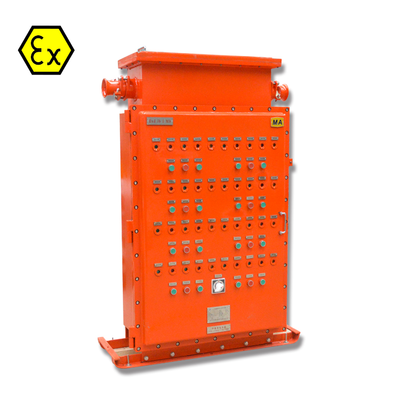 適用范圍適用于具有爆炸性危險氣體(甲烷)和煤塵的礦井中。在交流50Hz,額定工作電壓1140V/660V/380V條件下,能直接控制額定電流在400A以內(nèi)的鼠籠型三相異步電動機,具有短路、過載、斷相、漏電閉鎖等保護功能,適用于煤礦井下電機的控制。本電控柜主要用于防爆液壓機械閘、輸送機、皮帶機、給料機、破碎機、水泵、風機等設(shè)備的控制;有變頻、軟起等驅(qū)動方式。